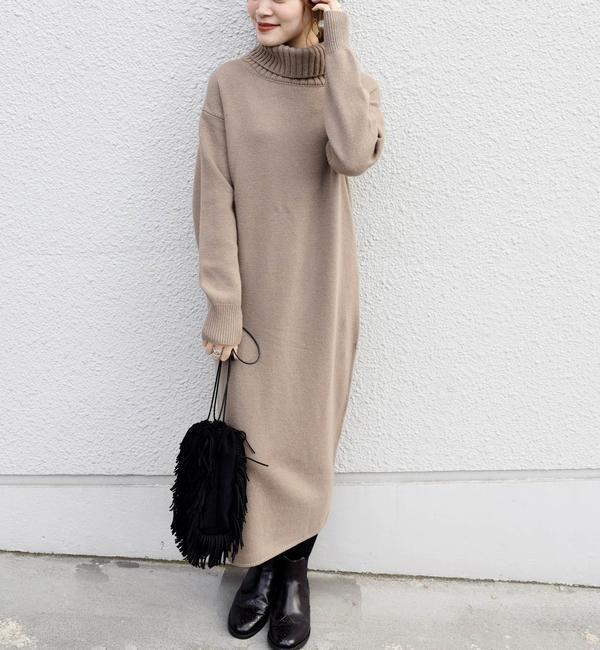 《予約》ウールカシミヤタートルネックワンピース◆