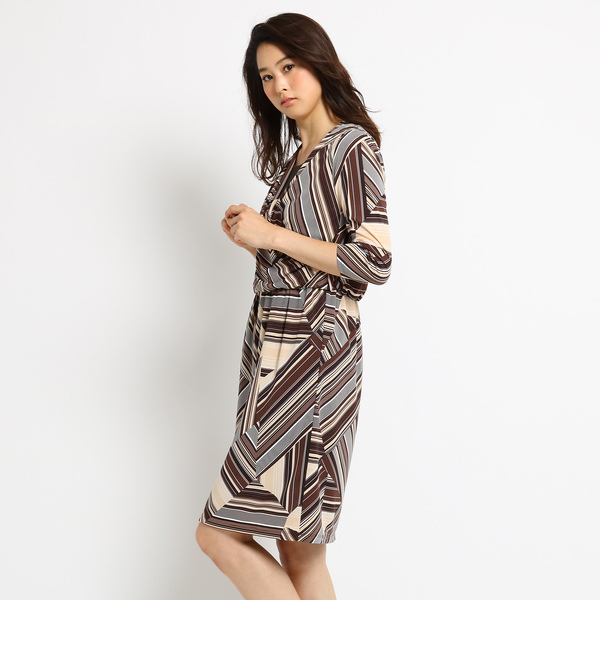 サラッとした清涼感と落ち感のあるジャージ仕立てのワンピース。変形カシュクールデザインで拘りのドレープデザインに仕上げています。不規則に向きに変化を付けたMIXストライプ柄が目にも鮮やかな1枚です。サイズ違いの商品もご用意しております。L:187-55933モデル情報:身長175cm B85 W60 H88 着用サイズ:38店舗へのお問い合わせ商品番号:187-55903主に秋に着用いただける商品です。 クード シャンス/COUP DE CHANCE COUP DE CHANCE|ワンピース|ワンピース