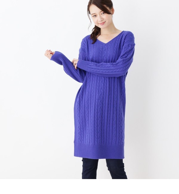 ウール混Vネックケーブルニットチュニック